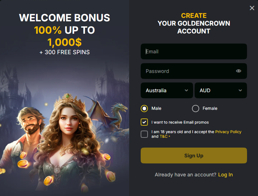 The process of joining Golden Crown Casino is straightforward. Please sign up with your email address, password and select AUD as your currency. You will then need to verify your account via email. Once you have logged in to your Golden Crown Casino account, please submit ID and address verification for the purpose of withdrawals. It is fast, secure and user-friendly.